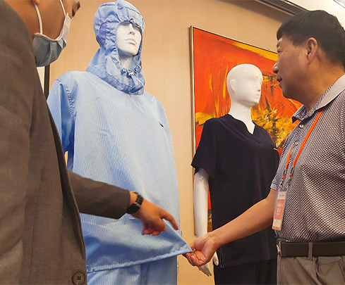 選用質量的聚酯長絲纖維和導電纖維減低塵埃吸附,防靜電性能8項檢測調控,使用不易發層,有效減少對作業環境帶來的影響材料均可通過GB/T24249-2009(潔凈服標準)GB/T20039-2005(洗滌混合紡織標準)GB/T2172(拉鏈標準)等相關檢測,可提供第三方原料檢測報告
